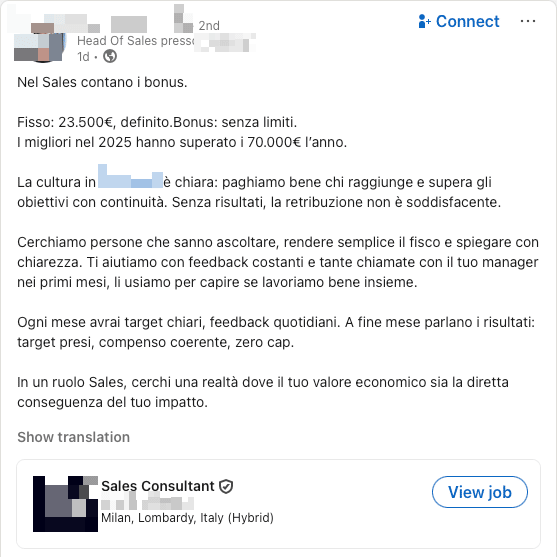 A few days ago, another job post appeared on LinkedIn. A sales role.