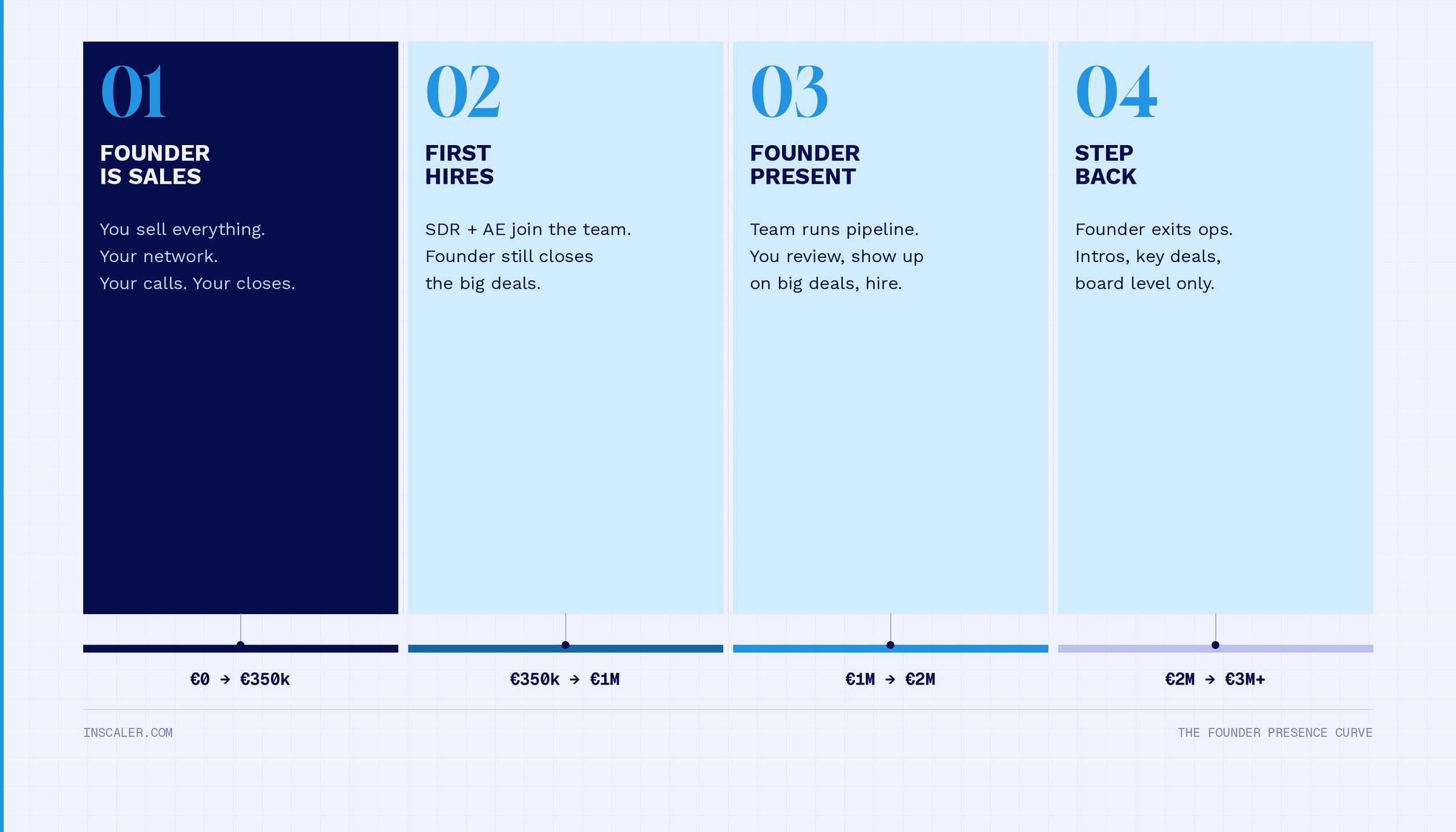 Until you reach somewhere around €200-500k in revenue, the founder is not just involved, the founder IS sales.