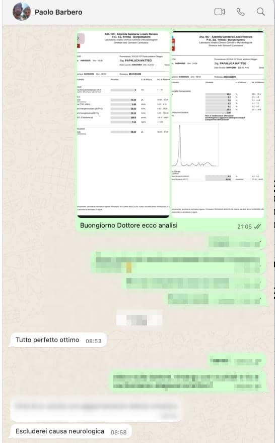 "Matteo, we need to run brain and neurology tests to exclude any brain causes."